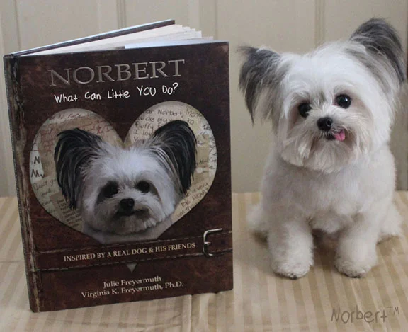 The much-anticipated second book in the series, Norbert: What Can Little YOU Do?, is a children’s picture book inspired by a real 3-pound registered therapy dog and his real-life friends: Colin, Malia, Alondra, Jeanie and Lucy. Our tiny hero is on a mission to spread kindness throughout the world. He encourages readers of all ages to think of ways to make others smile by caring, giving, and showing respect. What does it mean to be kind? There is a visual clue on every page.This book also features playful pencil sketches by Jeff Freyermuth. Norbert's second book follows the international award-winning picture book Norbert: What Can Little Me Do?